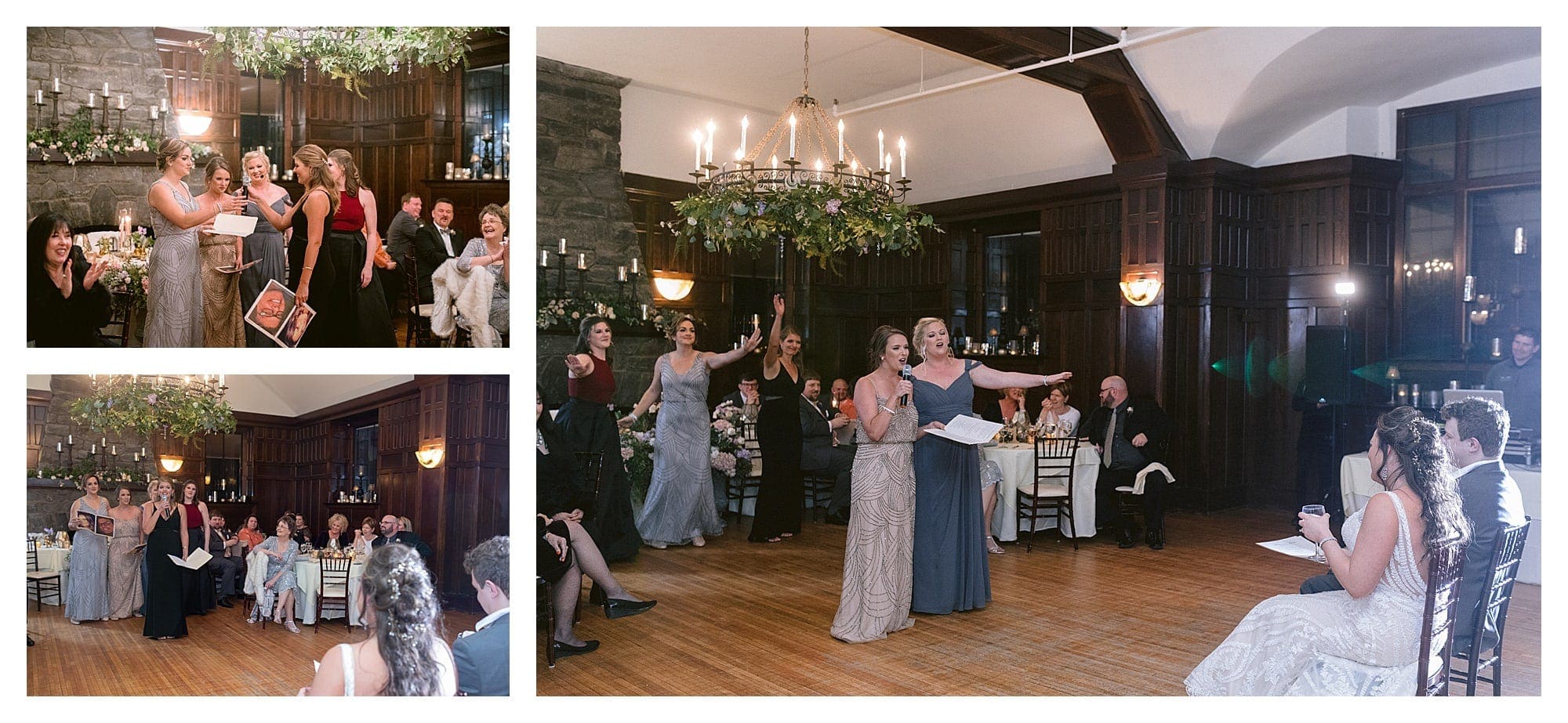The bride’s sisters & bridesmaids created a “show” with their own lyrics set to Frozen music. It was so much fun – they even had custom folders for the lyrics with B & A’s faces on the cover. As you could guess from the surprise song the bride a huge Disney fan. The Bride’s dad shared a sweet story of when she was little would dress up in mom’s pink pumps and y’all they had those very shoes for Alex to place on Brittany’s feet at the reception during Dad’s speech/toast. Such a sweet moment!